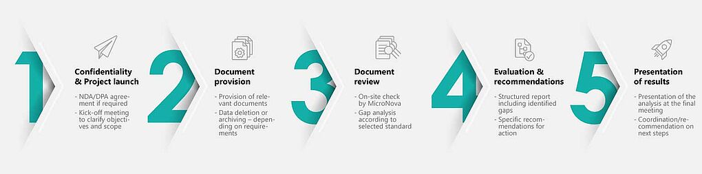 The ideal starting point: a one-time full review including a gap analysis of your project documentation according to the standard you have chosen.